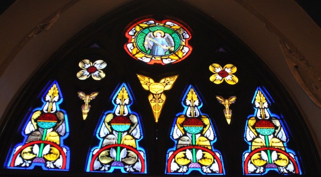 - 1929: The original brick was covered with imitation stone called Shamrock, and the wood altars were carved by a German master. Fresco painting was done by artist Frank Dirkson.